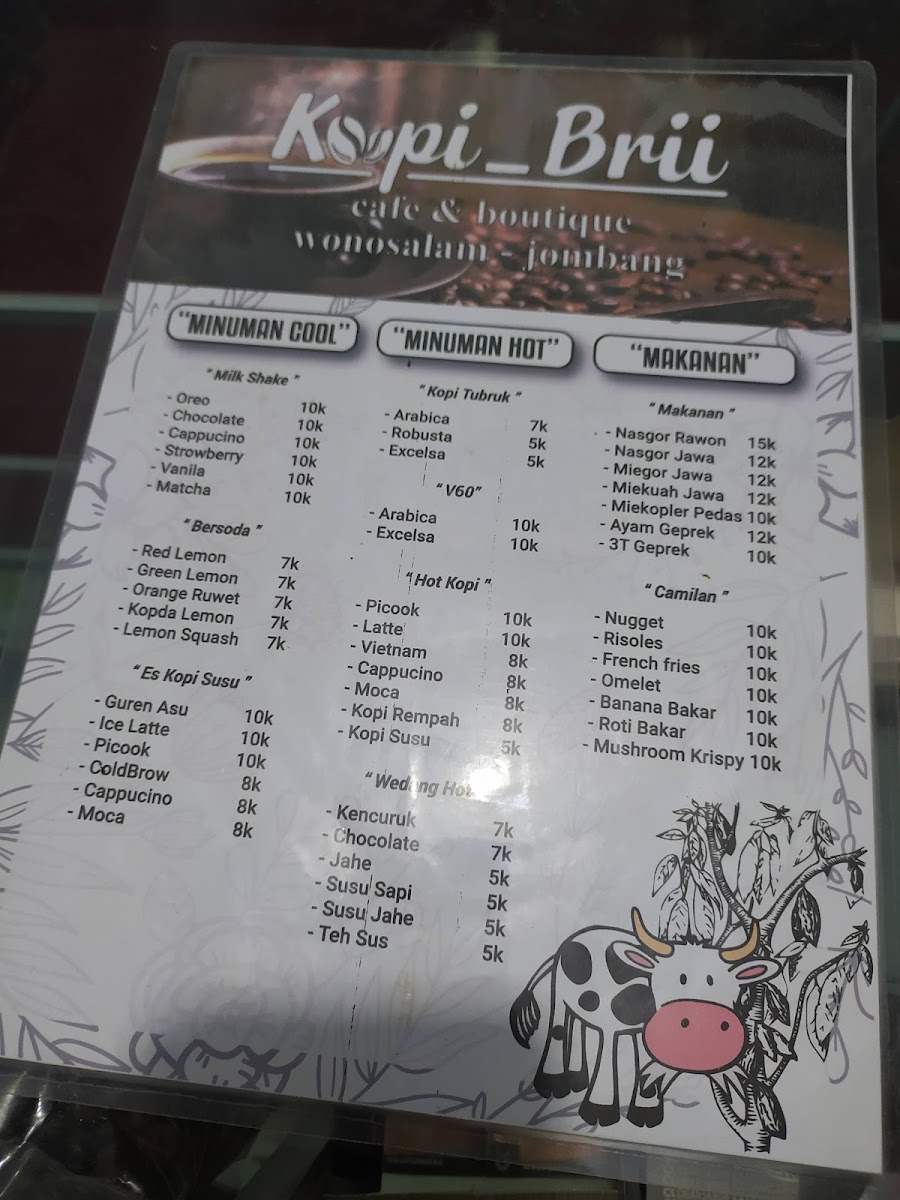 Kopi_Brii juga menyediakan Manu minuman selain kopi seperti Original Susu Sapi Segar & Racikan Susu Sapi seperti Milkshake Rasa-rasa & ada juga minuman hangat dengan khas pedesaan seperti ramu-ramuan herbal "EMPON-EMPON".